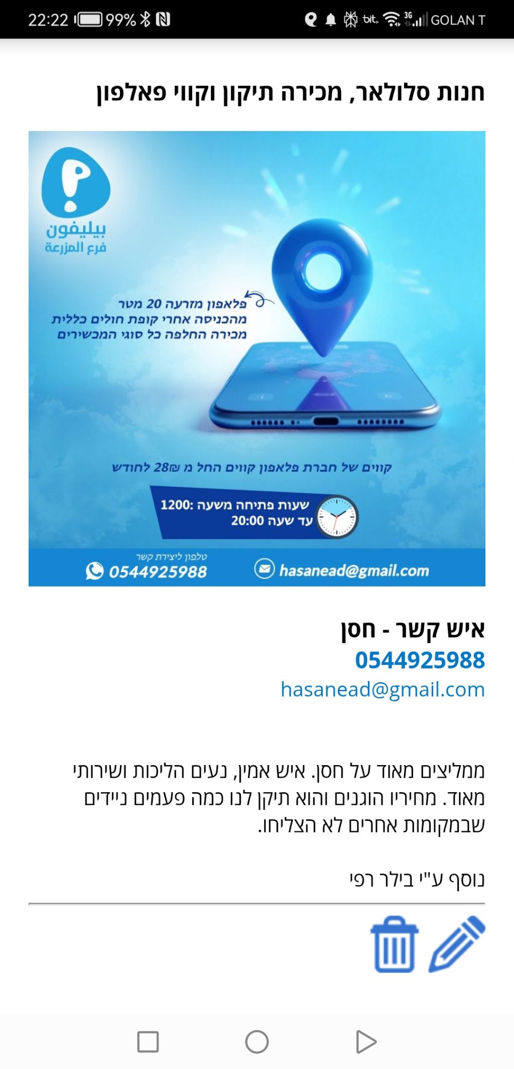 חנות לאביזרים וממכר ותיקון מכשירי סלולאר. ממליץ מניסיון אישי.